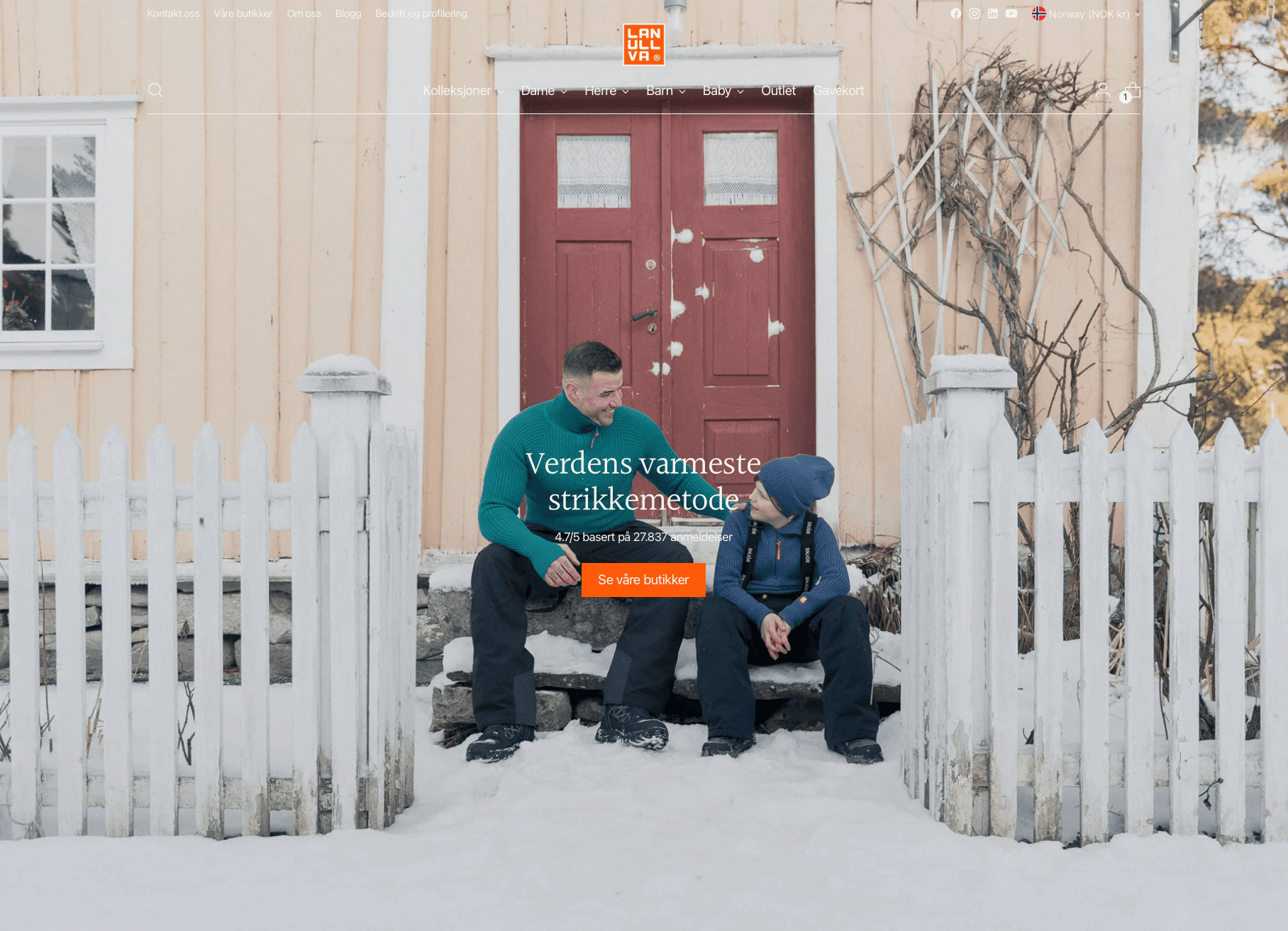 Oct 2025–Feb 2026 vs last year: +35% sales, +22% orders, +7% AOV (kr 1,291 vs 1,211). Conversion improved to 2.46% (up from 1.97% earlier in 2025). Loyalty strengthened: 56.4% returning customers (from 51.6%), with returning customers driving +62% revenue. Top growth categories: ulltrøyer +57%, ullstillongs +62%, ullgenser +49%. Returns fell despite higher volume, and the theme update set the store up for international expansion.